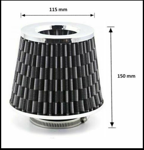 Filtro conico universale vari colori a scelta da indicare all'acquist completo di adattatori della Race Sport ,misure sono quelle della foto